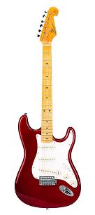 Elgitarr med kropp i basswood och hals i kanadensisk lönn. Utrustad med tre single coil pickuper och vintage svajstall. Levereras med gigbag. * Specifikationer - Scale : 648mm - Body : solid basswood, S-S-S routing - Neck : selected Canadian maple - Truss rod : 2 way truss rod - Neck reinforcement: engineered wood - Fingerboard : engineered wood - Frets : nickel - Number of frets : 21 - Position marks : dots inlayed, black - Machine heads : die-cast, chrome - Nut : synthetic bone - Nut width : 42mm - Bridge : chrome - Strings : D’Addario - Pickups : 3x single coil - Pickup configuration : S-S-S - Controls : 1 volume, 2 tone, 5 way switch - Pickguard : vintage green/black/vintage green, 3-ply - Color : Candy Apple Red - Finish : glossy