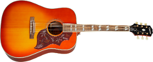 Epiphone's Most Faithful Hummingbird Takes Flight. The Hummingbird™ is one of the most instantly-recognizable and remarkable acoustic guitars ever built. The new Epiphone Inspired by Gibson™ Hummingbird blends solid woods, vintage appointments, and a Fishman® Sonicore under-saddle pickup and Sonitone preamp. Outfitted with gold Epiphone Deluxe tuners, top and back multi-ply binding, Kalamazoo style headstock, and a bone nut and saddle, it's available in Aged Antique Natural Gloss and Aged Heritage Cherry Sunburst Gloss finishes. --- NECK Material: Mahogany Profile: Rounded C Scale Length: 24.724" Fingerboard Material: Indian Laurel, Antique Ivory binding Fingerboard Radius: 12.01" Number Of Frets: 20 Frets: Medium Jumbo Nut Material: Bone Nut Width: 1.693" Inlays: Mother of Pearl Split Parallelogram Joint: Glued in, Tapered Dovetail Set Neck BODY Body Shape: Square Shouldered Dreadnought Body Material: Solid Mahogany Top: Solid Sitka Spruce Back: Solid Mahogany Side: Solid Mahogany Bracing: Quarter Sawn Spruce Binding: Ivory and Black 6-ply (top) and 4-ply (back) Finish: Aged Gloss HARDWARE Finish: Gold Tuner Plating: Gold Bridge: Reverse Belly - Indian Laurel Saddle Material: Bone Tuning Machines: Epiphone Deluxe with press in gold bushings Pickguard: Hummingbird Tortoise Shell with Graphics : Epoxy Style TrussRod: Dual Action Truss Rod Cover: 2-Ply, HUMMINGBIRD in white Bridge Pins: Ivory Strap Buttons: 2 - bottom and side of heel ELECTRONICS Under Saddle Pickup: Fishman Sonicore Controls: Fishman Sonitone Soundhole Volume and Tone controls Output Jack: 1/4" Endpin Jack Preamp: Fishman Sonitone