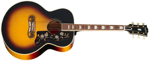 The Gibson SJ-200 ™ was introduced to the world in 1937 and quickly earned the nickname "the King of the Flat-Tops" due to its physical size, high-quality sound, exceptional projection, and undeniable stage presence. While the early models used rosewood, in 1947, the wood used for the sides and back changed to maple. The SJ-200 has been used by everyone from matinee cowboys to folk troubadours, country crooners to rock royalty, and vintage SJ-200 models are in high demand among collectors. Now, Epiphone, in collaboration with Gibson Custom, is proud to introduce the 1957 SJ-200 Reissue, an Inspired by Gibson Custom recreation of the majestic 1957 Super Jumbo model, making it more accessible for today's guitarists to enjoy. The Epiphone 1957 SJ-200 Reissue is packed with vintage-inspired details and features all solid wood construction, including a thermally aged solid Sitka spruce top that is reinforced with scalloped X-bracing, solid figured maple back and sides, multi-ply top and back binding, a two-piece flame maple neck with a walnut stringer, comfortable C profile, and a bound Indian rosewood fretboard with mother-of-pearl graduated Crown inlays and 20 standard frets. The neck is attached to the body with a glued-in dovetail joint. The SJ-200 style pickguard has vintage-style graphics, and the rosewood SJ-200 open two-bar Moustache™ bridge has mother-of-pearl inlays. The nut, compensated saddle, and bridge pins are all made of bone. The bound, Gibson-style "open book" headstock features the Epiphone logo and Gibson Crown inlaid in mother-of-pearl. The rear of the headstock of the Antique Natural model has a stinger (there is no stinger on the Vintage Sunburst version), and the 1957 SJ-200 Reissue also has an Inspired by Gibson Custom Double Diamond logo etched on the headstock rear. To make it even more suitable to the needs of modern musicians, it comes with an under-saddle L.R. Baggs™ Element Bronze VTC piezo pickup and active preamp with soundhole-mounted volume and tone controls pre-installed, so it is stage and studio ready, straight out of the included Red Line-inspired hardshell case, which features Inspired by Gibson Custom graphics. --- Body Shape SJ-200 Top Thermally Aged Solid Sitka Spruce Back/Sides Solid Figured Maple Bracing Scalloped X-Bracing Binding Multi-ply Top and Back, Single Ply Fretboard and Headstock Neck Neck Two-Piece Flame Maple with Walnut Stringer Profile C-profile Nut width 1.72" / 43.79mm Fingerboard Indian Rosewood Scale length 25.5" / 647.7mm Number of frets 20 Nut Bone Inlay Mother-of-Pearl Graduated Crown Hardware Bridge SJ-200 Rosewood Two Bar Moustache; Mother-of-Pearl Bars Tuners Epiphone Deluxe Plating Gold Electronics Under saddle pickup L.R. Baggs Element Bronze VTC Controls Soundhole-mounted Volume and Tone Case & SKUs Case Red Line-inspired Hardshell with Inspired by Gibson Custom Graphics