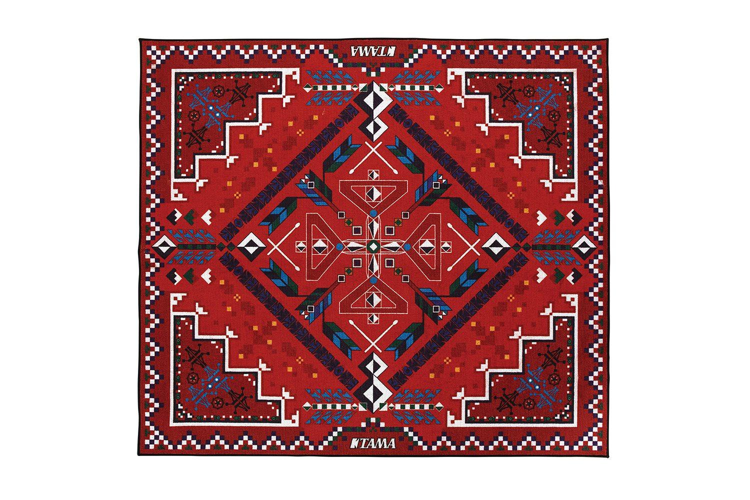 Rødt trommeteppe med Soutwestern mønster og med Tama logo.Gummiert underside for at teppet ikke skal skli.Mål: 1800mm x 2000mm.